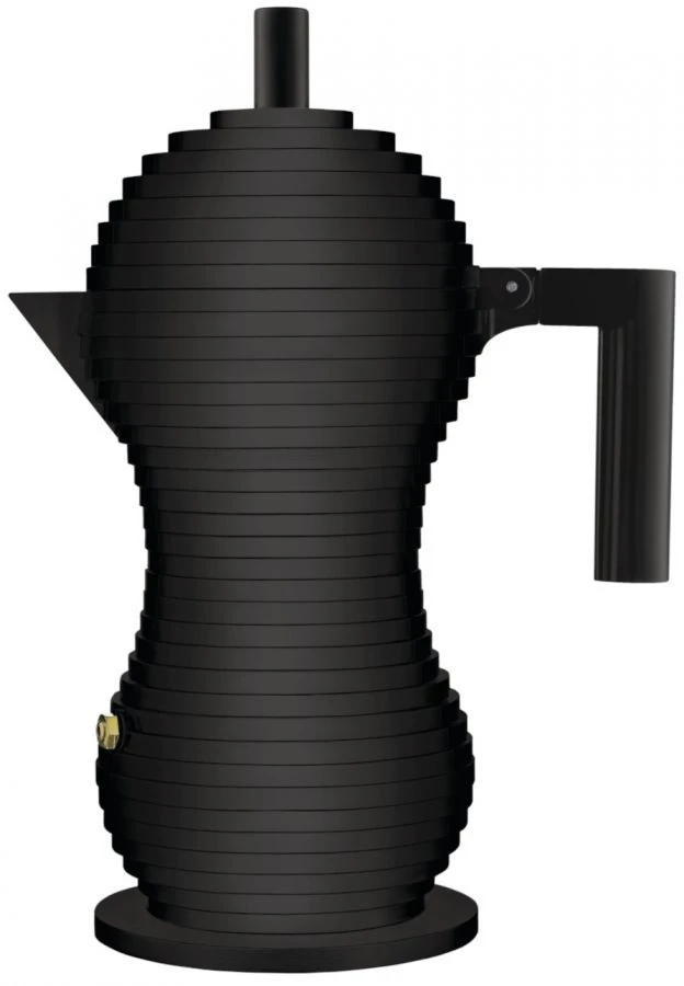 Presented in 2015, the Pulcina stove top coffee maker immediately won over the public. In the Black Edition version, the light plays with the stepped shape designed by Michele De Lucchi, enhancing its originality.