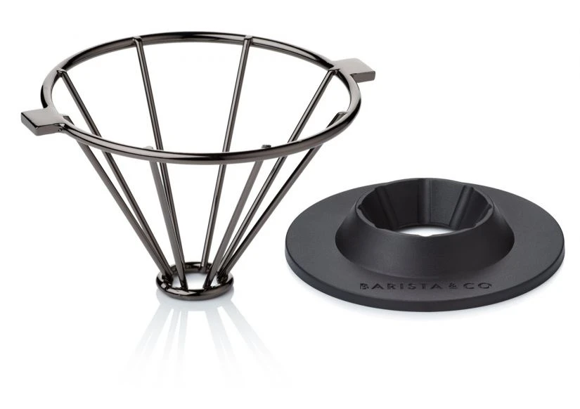 Barista & Co Corral Pour Over black stainless steel dripper designed to minimise the contact on the paper filter.