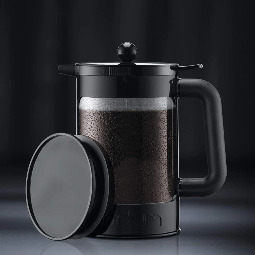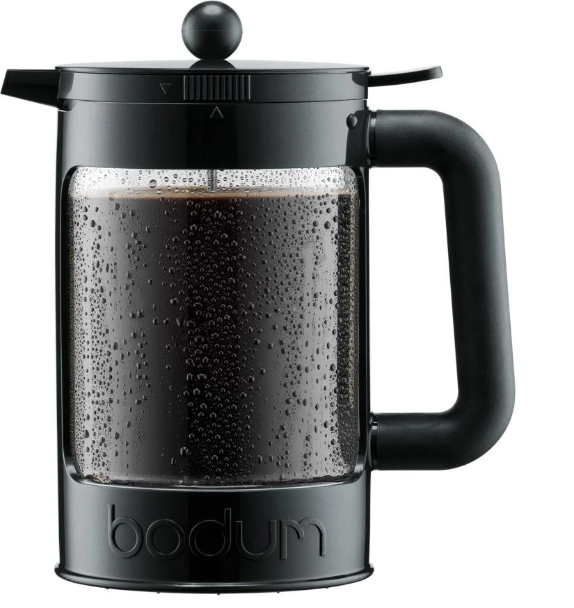 The Bodum Bean Set Iced Coffee Maker Set utilizes the classic French Press brew method to make delicious, flavorful iced coffee. To use, place coarse ground coffee beans in the carafe and add cold water.