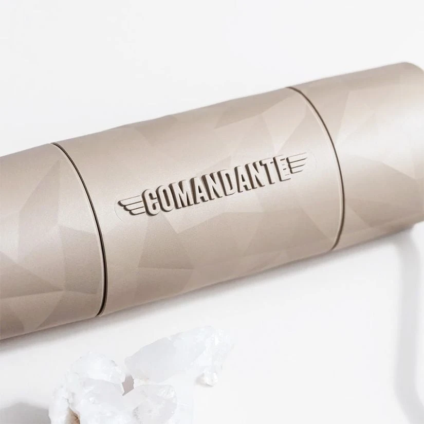 The new lightweight and robust Comandante Trailmaster X25 hand grinder designed for outdoor use, with the same grind performance (grind result and required strength) as the Comandante C40 thanks to the brilliant NITRO BLADE® burr set inside.