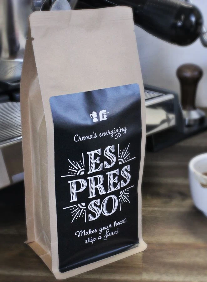 Crema Espresso is a dark roasted espresso bursting with flavour. The coffee is a blend of Brazilian Arabica and Indian Robusta, and you can find notes of dark chocolate and nuts in the coffee. It’s excellent as espresso and mighty good in milk coffees.