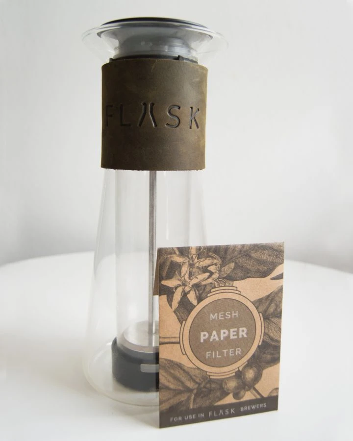 These fine mesh paper filters are designed specifically for the FLASK Coffee & Tea Brewer. While completely optional (you can brew in the FLASK without them), they’ll add an extra layer of refinement to your finished brew.