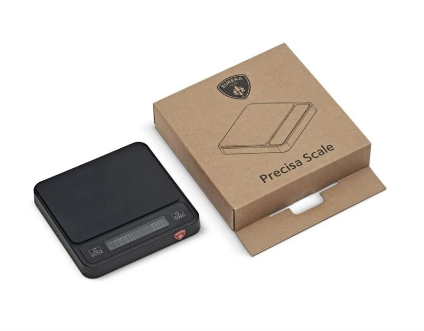 With the Eureka Precisa precision scale, you can accurately measure coffee extraction. The scale has a micro USB rechargeable battery as well as a timer and tare button. The Eureka Precisa scale features a fast response time, accuracy and a compact size; making it the perfect espresso scale.