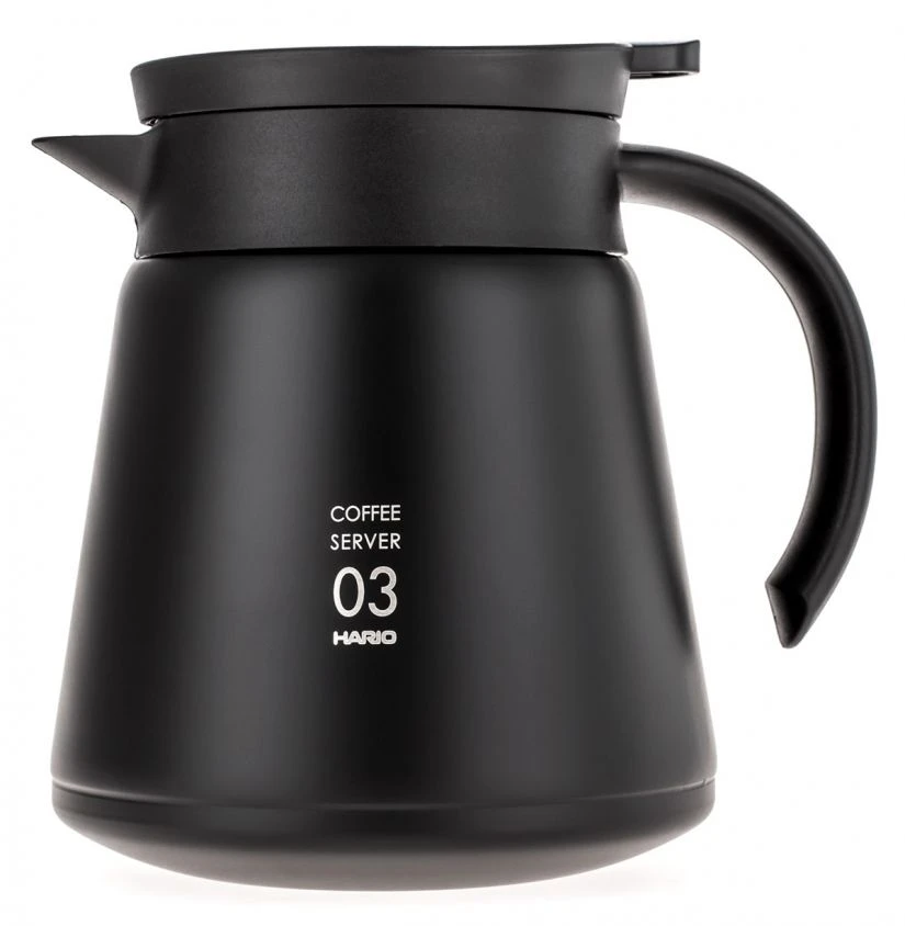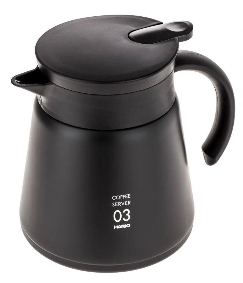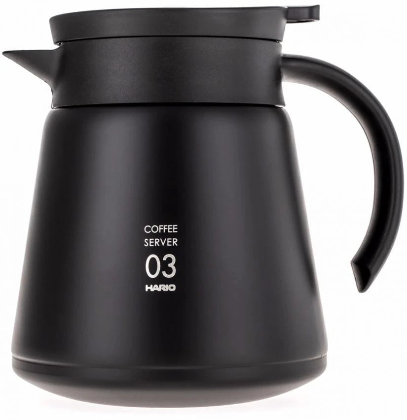The Hario V60 03 Insulated Server is made of steel and plastic. Double walls will allow you to enjoy your hot coffee longer! Vacuum sealing and opening the spout with a lever prevent any spills.