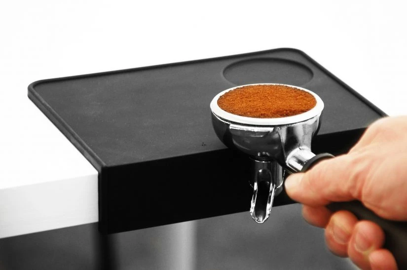 The JoeFrex Tamping Mat L is made of 5 mm thick food grade silicone which is raised to a full 8 mm around the rim to ensure even more stability and surface protection. The incorporated 90-degree rigid vertical fold enables you to firmly align the mat with a table or counter top edge for enhanced sturdiness and control. The surface provides generous work space with its 200 mm x 150 mm dimensions.