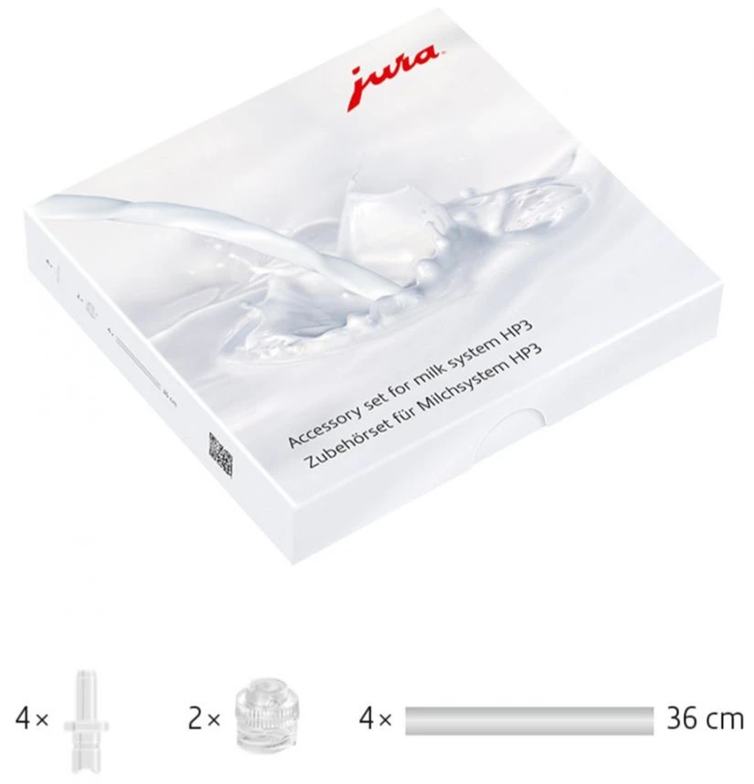 The Jura HP3 milk tube set includes 4 milk tubes as well as air nozzles and connectors (6 pieces in total) for Jura coffee automat milk frothers.