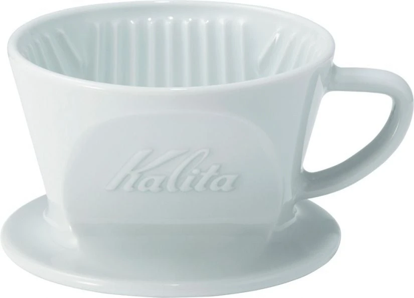 Kalita HA 101 ceramic wedge-shaped coffee dripper has groves on the inside to reduce the area of direct contact between filter paper and dripper. This design avoids the filter paper to stick to the side or bottom of the dripper and therefore ensures a smooth extraction of the pour over coffee. It also prevents loss of heat.