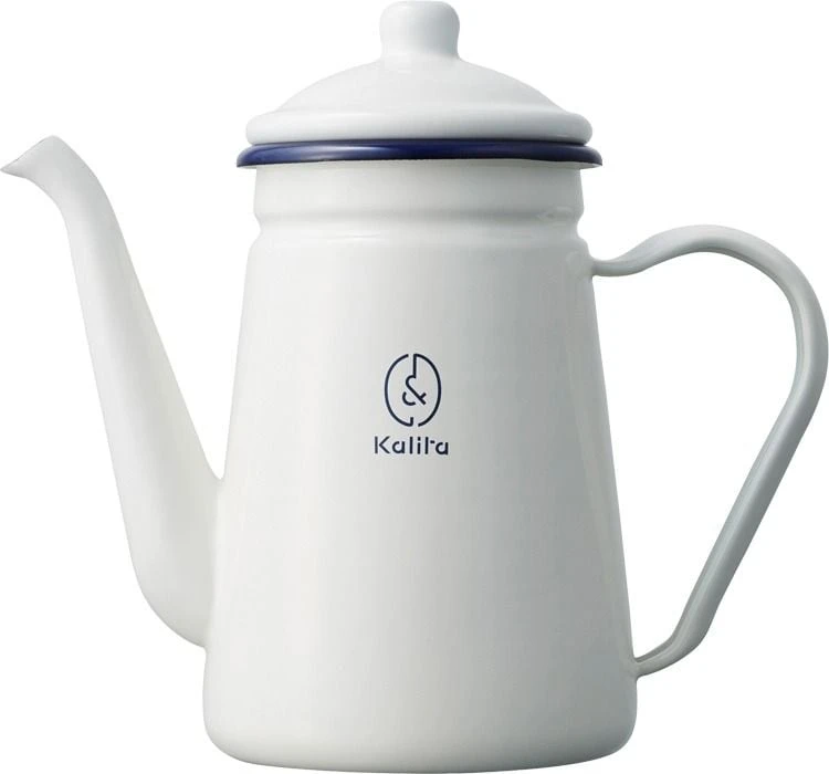 This Kalita white enamel water kettle has a slim pour spout that ensures maximal control while pouring. The spout is shaped in the gooseneck style which helps prevent the siphoning effect that can result in unwanted bursts in water velocity.