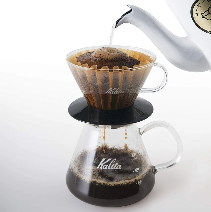 The Kalita Glass Server G coffee server is made of heat resistant glass and fits perfectly with the Kalita Wave Dripper as well as other major stand alone drippers including Hario V60. The server is microwave and dishwasher safe. The server has an inprinted scale which allows you to brew precisely the desired quantity of coffee.