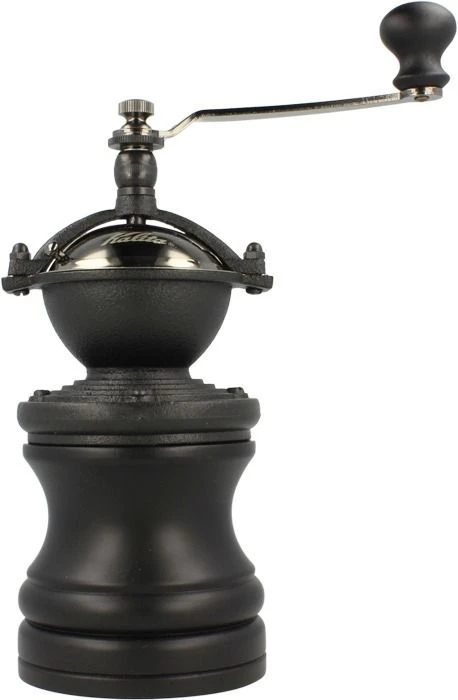 Kalita Round Slim Mill cast iron retro-style coffee grinder. This manual coffee mill has a reliable conical grinding gear that ensures a consistent grinding result. The grinding gear can be easily adjusted through a wheel screw.