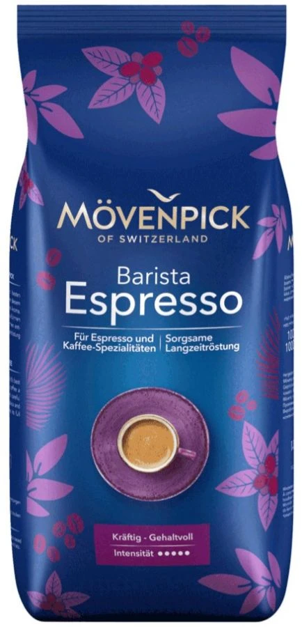 Mövenpick Espresso is a delicious, well balanced and intensive Arabica coffee blend with a little kick from a small (5 %) amount of Robusta. It is a strong and full-flavoured coffee with almost no bitterness. Excellent on its own or as a base for a strong cappucino or latte.