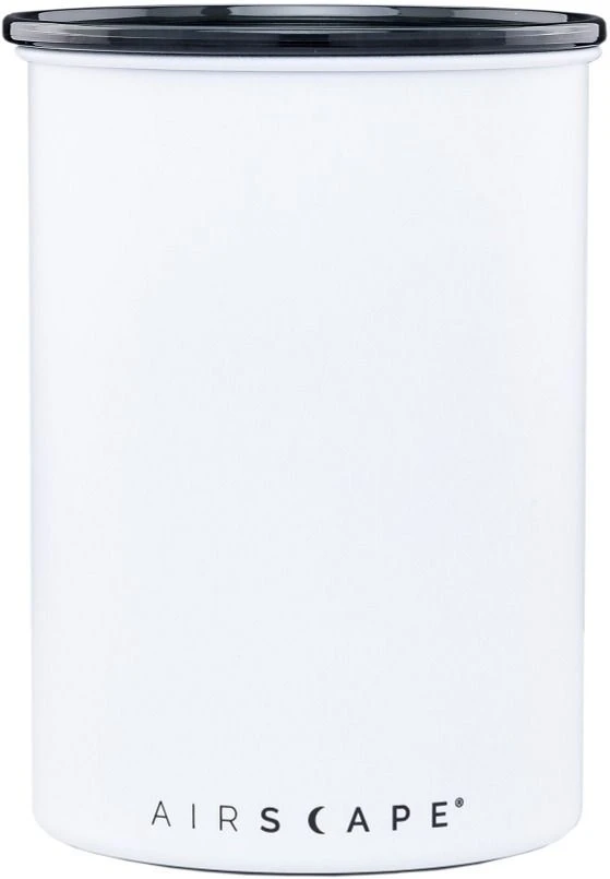 The original Planetary Design Airscape coffee & food storage canister with a patented plunger lid removes and locks out air and humidity creating airless food storage; extends the life of coffee, tea, flour, sugar, cereal, cookies, seeds, herbs, nuts, pet food or any perishable goods.