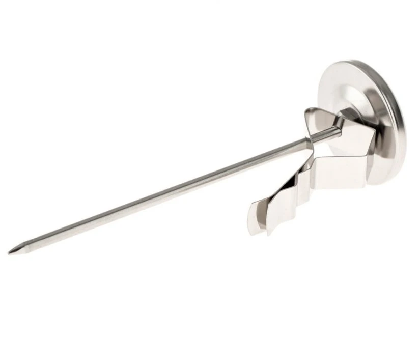 The easy-to-read dial on the Rhinowares milk thermometer allows for quick and accurate measure of textured milk and other beverages. The thermometer is 13 cm long. Temperature is shown within the range of -18 to 104 degrees Celsius, and it has a marked range for recommended milk temperature. The thermometer is also equipped with a stainless steel clip with adjustable height, allowing the thermometer to sit perfectly in a milk pitcher.
