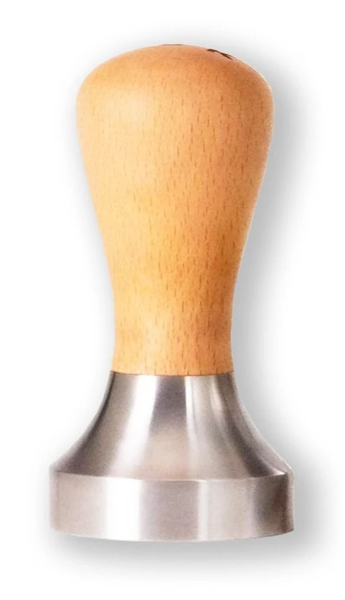 The ROK coffee tamper is turned from seasoned beech timber with flat-based 316 steel tamper head. It is 49.7 mm in diameter and engineered to perfectly fit all ROK portafilters.