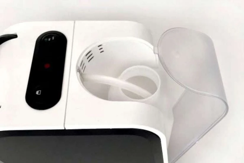 The Ciao is only 14 cm wide and has a design that suits several different environments. The water refill is easily carried out through a bottle inserted inside a transparent tank. A patented self-cleaning system prevents any limestone formation.