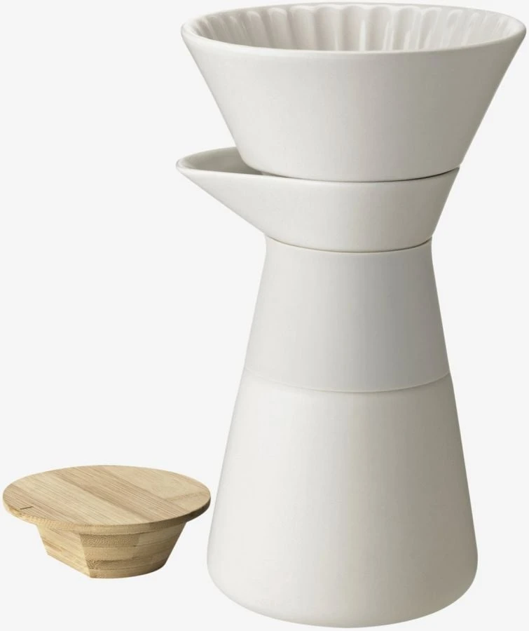 The products in the Stelton Theo series are designed by Francis Cayouette. The Theo Coffee Maker, made of matt stoneware, is both rustic and elegant.