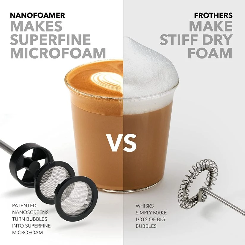 Craving barista-style cappuccinos at home? Create café-quality microfoamed milk in seconds with the NanoFoamer.
