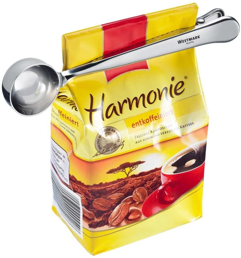 A traditional 7 g coffee measure spoon with clip from German Westmark; allows you to neatly close an opened coffee package. The coffee measure can be cleaned in the dishwasher.